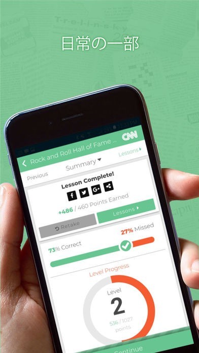 • CNNのワールドクラスのニュース記事と情報に基づいたレッスンで英語能力を向上。