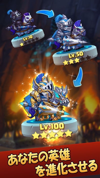 - コイン、ジェムとヒーローの破片を集めてヒーローを召喚しましょう!そして、保有するヒーローをソウルで強化して、強大な力を手に入れましょう!