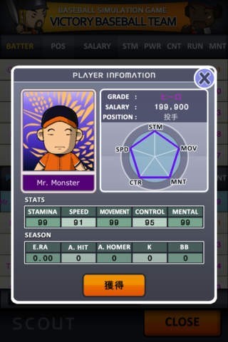 ピッチャーやバッターなど個性豊かな野球選手が登場!監督になってチームを強化しよう!