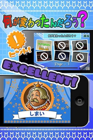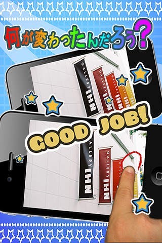 変化した部分をタップで指摘!3回ミスタップをするとヒントを表示可能!