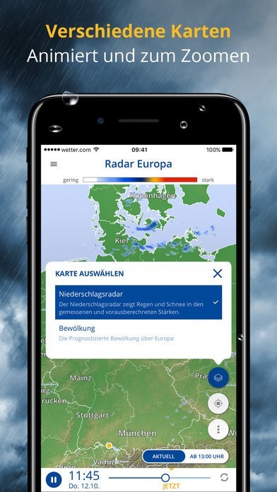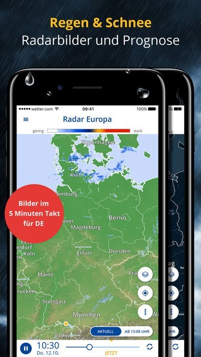 Wir bringen Ihnen den Niederschlagsradar und die Niederschlagsvorhersage in Kartenform direkt auf Ihr iOS Gerät.