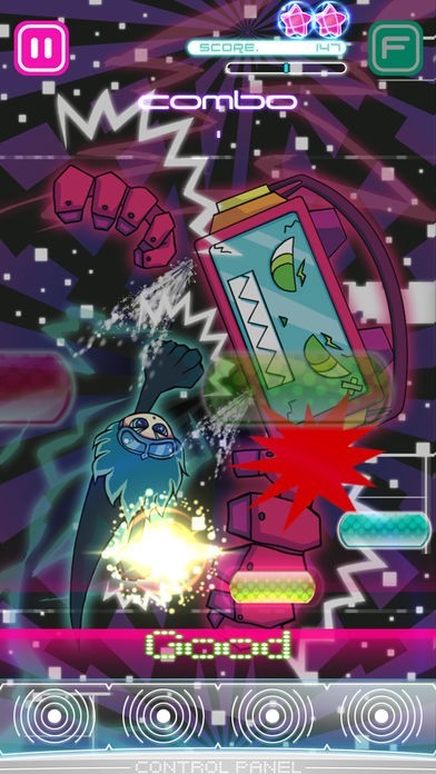 独特のカラーリングや写真とイラストの背景でリズムゲームを遊べて楽しいです。