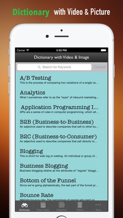 *私たちは、最も一般的なマーケティング用語集と用語のすべてを収集しています。 あなたが名前によって困惑を感じるところはどこでも、アプリがあなたの強力な辞書ツールです。