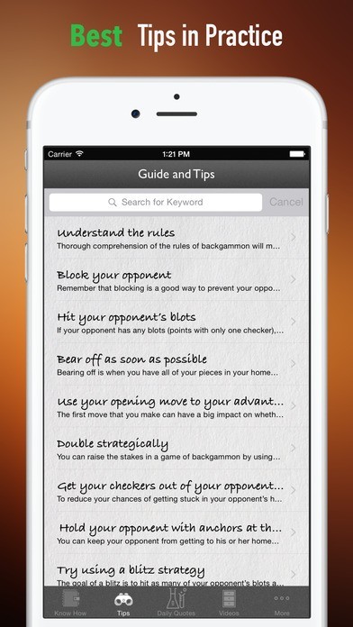 App Storeより引用バックギャモンをプレイする方法を学ぶDIY 、毎日のヒントと同様に、専門家のアドバイスを助ける取得したいしたいですか? これはあなたのためのアプリケーションです。