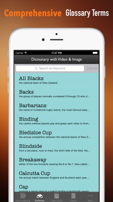 ラグビーの百科事典: クイック学習ビデオ レッスンと用語集参照のスクリーンショット