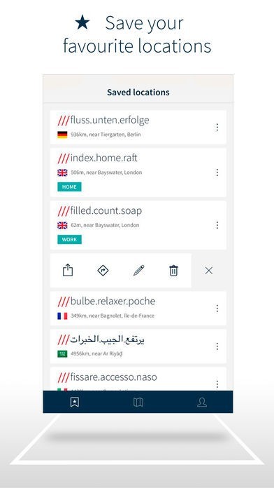 世界中のマップを3mのマスで分割し、対象の場所に3つの単語で地名を付けられるのが「what3words」の特徴です。例えば名称のない広場で待ち合わせる場合、通常の住所で表現することはできませんが、アプリ内にて3単語をアドレス設定することで正確な場所の伝達が実現します。また、複数の言語に対応している点もポイントで、日本語の設定も可能となっており、家庭用だけでなくビジネス用としても便利です。