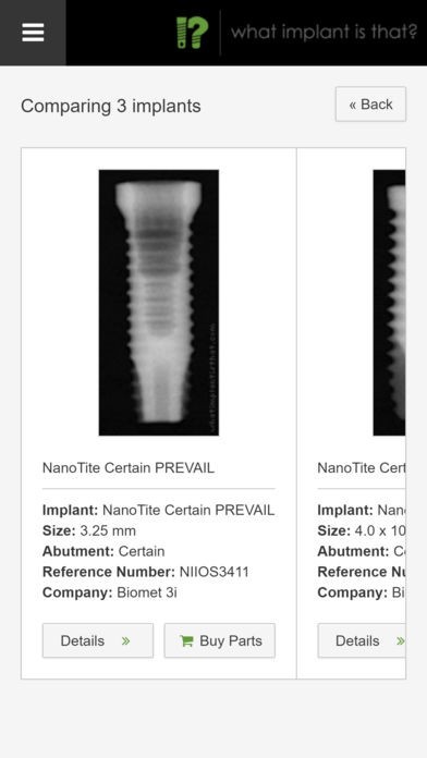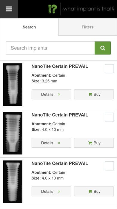 レントゲンを見ていて、映っているインプラントがどんな種類のものか分からないことはありませんか? このアプリを使えばインプラントの種類や用途が調べられるだけでなく、インプラントを互いに比べたり、他の医師によるデータベースも閲覧できます!