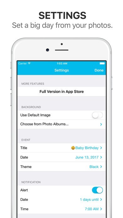 「Big Day Lite - 記念日までの日にちを通知」スペック・仕様