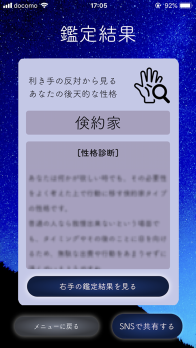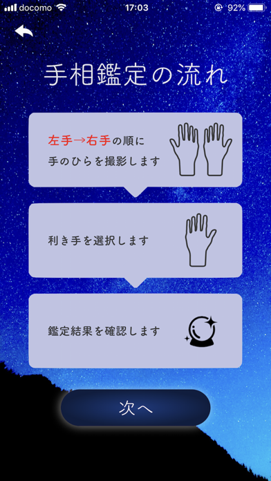 手相解析&性格診断を行ってくれるアプリです!