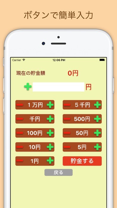 ・貯金した額をタップし、「貯金する」ボタンで貯金