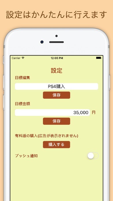 欲しい物と、目標金額を入力して貯金をはじめてみよう!
