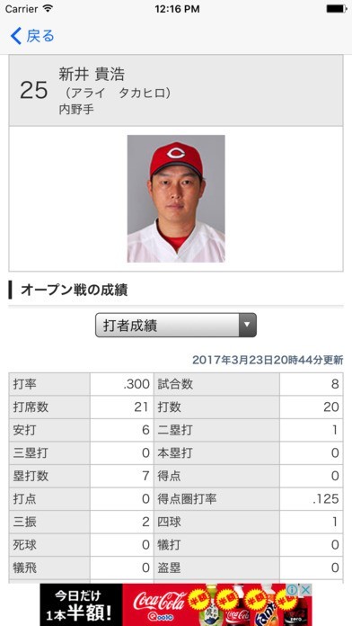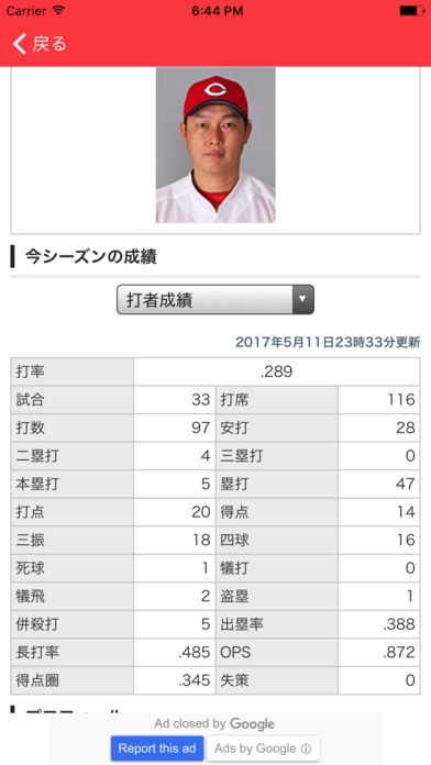 独自の応援歌を持つ選手の昨年の成績が閲覧できる