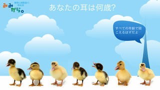 耳が遠くなってきた時に、医者にかかる前に自分の耳年齢を把握したくなりませんか?耳年齢アプリを使えば、モスキート音を使って、大まかな耳年齢を把握することができます。使い方は、画面に出てくるひよこをタッチをクリックするだけ。並んだひよこの年代別に合わせて聴力を確認できるんです。まずは、年齢の高い所から試してみましょう。また、全国各地に点在している補聴器販売店もリサーチもできるから、初めて店舗にチャレンジする際にも戸惑わないので便利です。
