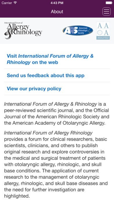 SUBSCRIBE IN THE APP: Annual Subscriptions (12 issues) for the iPad-only edition are available for $299.99 (US) per year. Payment is charged to your iTunes account after confirmation of purchase. International Forum of Allergy & Rhinology subscriptions automatically renew within 24 hours of the end of your subscription period for $299.99 (US) unless auto-renew is turned off at least 24 hours before the end of the subscription period. To turn off auto-renew, go to your iTunes account settings after purchase. Note that subscriptions cannot be cancelled during the term of the subscription, but you can still turn off auto-renew to prevent automatic renewal of your subscription. Note that any unused portion of a free trial period, if offered, will be forfeited when you purchases a subscription.