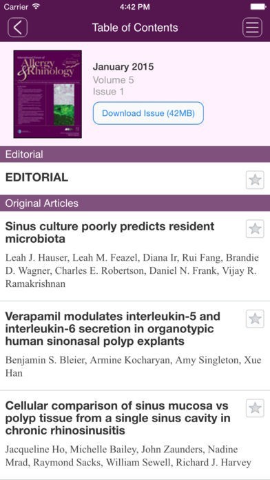 App Storeより引用A leading otorhinolaryngology journal is now available on your iPad and iPhone. Fresh from the Newsstand, “International Forum of Allergy & Rhinology” app is the leading source of information that publishes high quality original research on the medical and surgical treatment of patients with otolaryngic allergy, rhinologic, and skull base conditions. Enjoy an entirely new browsing and reading experience, and keep up to date with the most important developments in otorhinolaryngology research even faster: