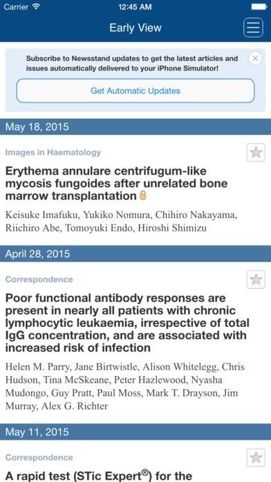 CURRENT SUBSCRIBERS to British Journal of Haematology can “pair” their device with their personal or institutional subscription to enjoy full access in this iPad edition.