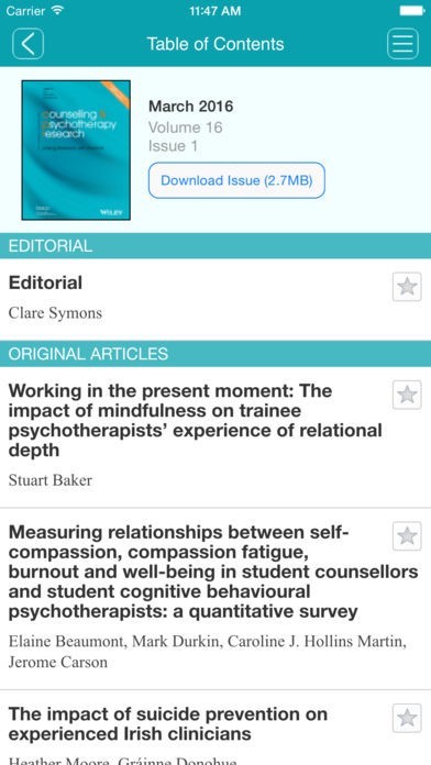 CURRENT SUBSCRIBERS to Counselling and Psychotherapy Research can “pair” their device with their personal or institutional subscription to enjoy full access in this iPad edition.