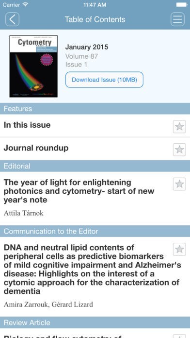 CURRENT SUBSCRIBERS to Cytometry Part A can “pair” their device with their personal or institutional subscription to enjoy full access in this iPad edition.