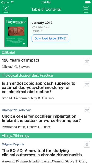 CURRENT SUBSCRIBERS to The Laryngoscope can “pair” their device with their personal or institutional subscription to enjoy full access in this iPad edition.