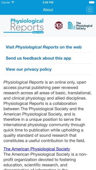 App Storeより引用The open access journal Physiological Reports is now available on your iPad and iPhone. Enjoy an entirely new browsing and reading experience, and keep up to date with the most important developments in physiology even faster: