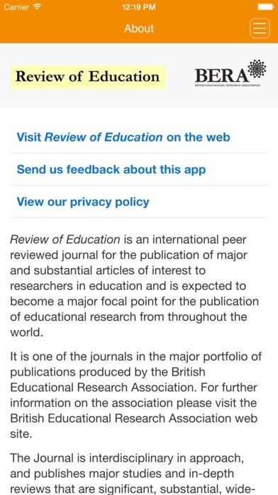 App Storeより引用A leading education journal is now available on your iPad and iPhone. Fresh from the newsstand, “Review of Education” publishes major studies and in-depth reviews that are significant, substantial, wide-ranging and insightful, and have a genuinely international reach and orientation. Enjoy an entirely new browsing and reading experience, and keep up to date with the most important developments in education research even faster: