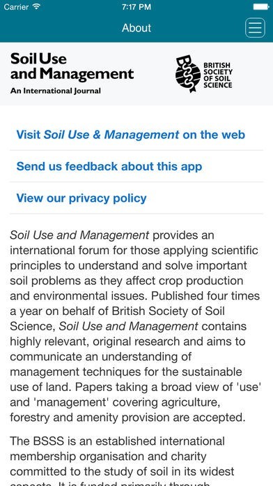 App Storeより引用This is an APP for the British Society of Soil Science journal, Soil Use and Management.