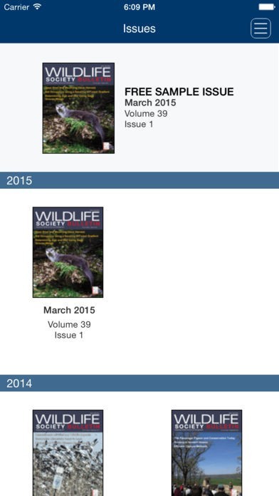 App Storeより引用A leading wildlife practitioner journal is now available on your iPad and iPhone. Fresh from the newsstand, “The Wildlife Society Bulletin” brings you a cutting edge science with management and conservation, and also covers important policy issues. Enjoy an entirely new browsing and reading experience, and keep up to date with the most important developments in chemical research even faster: