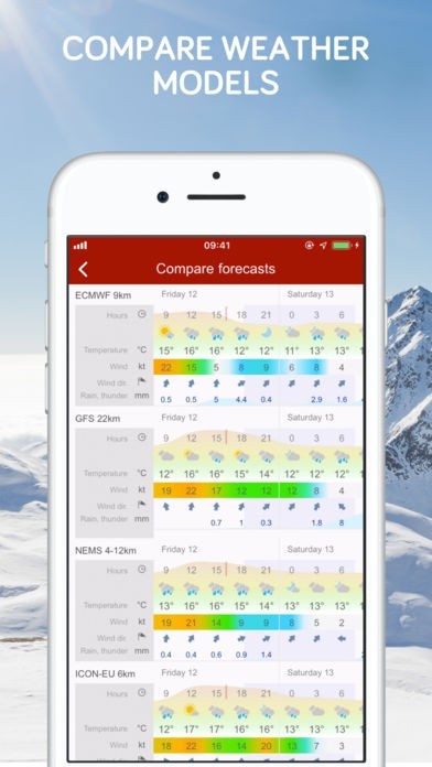 「Windy」では、あらかじめ設定しておいた天候になっているエリアを見つけるとアプリが通知を送信してくれます。風向きや気温、時刻など細かく設定しておくことが可能です。