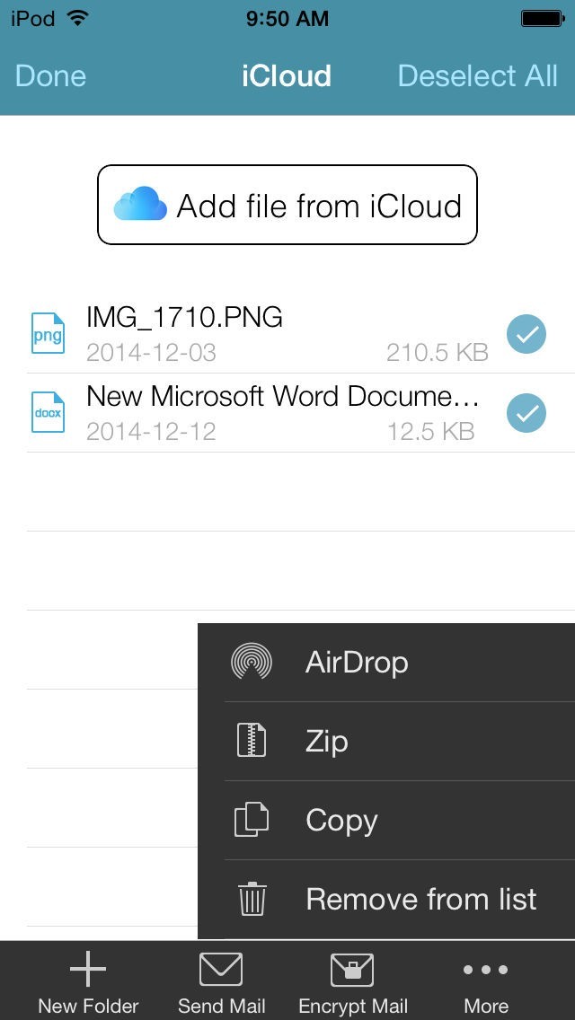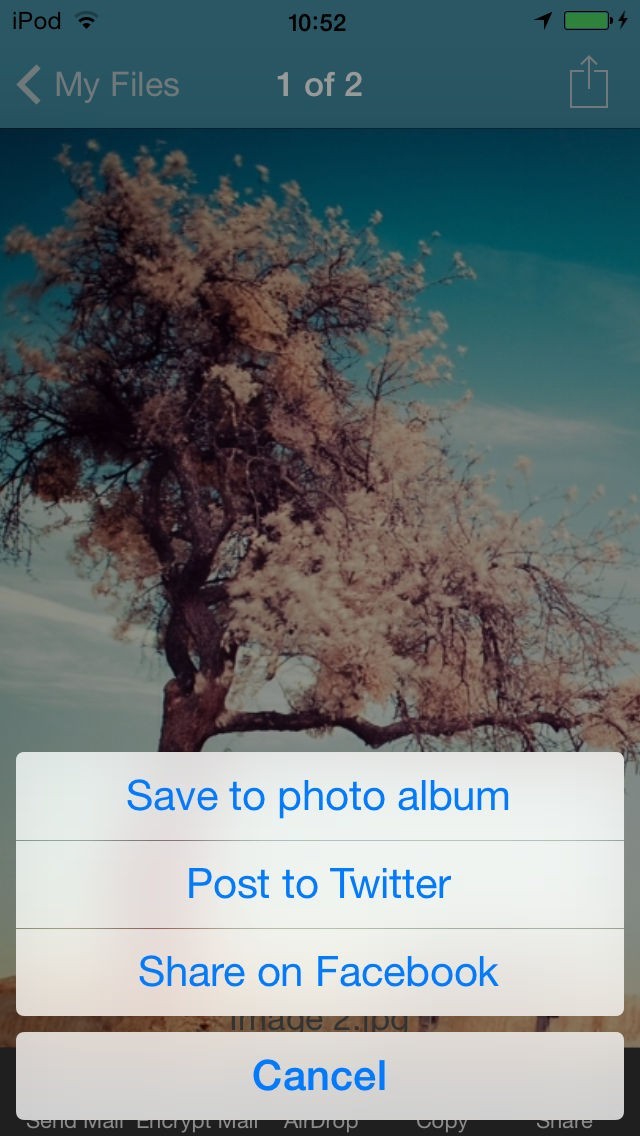 クラウドストレージから保存したファイルやカメラロール内のファイルを暗号化して保護しながら圧縮することができます。大容量の画像やビデオ、音楽ファイルでも圧縮して軽量化することで電子メールで送信したり、SNSでシェアすることが可能です。