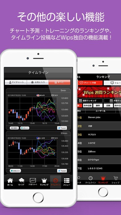 「FX(為替)類似チャート検索 Wips 〜値動き予想の比較・分析に〜」とは、ワンタップするだけで類似チャートパターンを検索してくれるFXアプリです。無料提供のものでは性能も高く、チャート予想トレーニング機能も充実しております。過去の統計データと比較して現在類似率が高いチャートパターンを検索もできますので、瞬時の判断が必要となるFXをやる際に使えるサポートアプリだと思います。外国為替証拠金取引トレードにおいて値動きのを見る分には非常に役立ちます。 タイムライン保存の機能も有しており、プレミアム検索によって得られる複数同時比較チャートデータを、あとから見る為に保存することができるので再確認可能です。