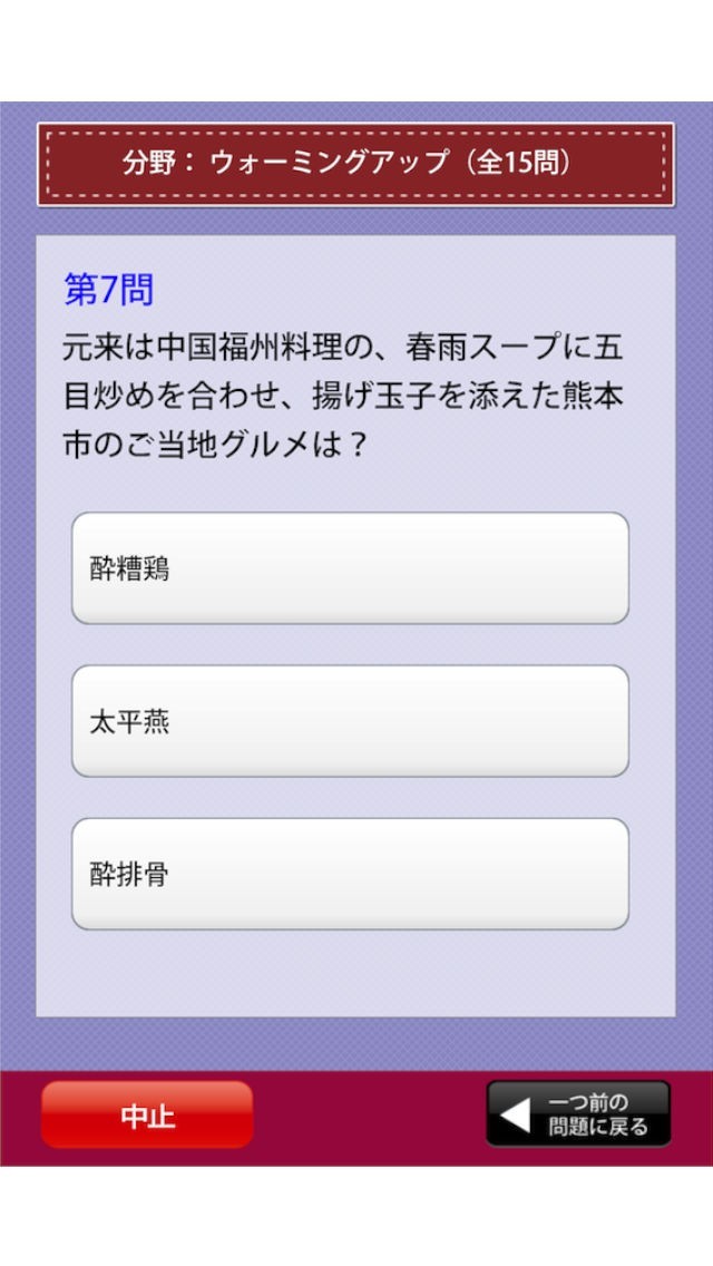 熊本県の問題とても楽しくやっています。県民性を勉強しながら楽しめてとても良いです。