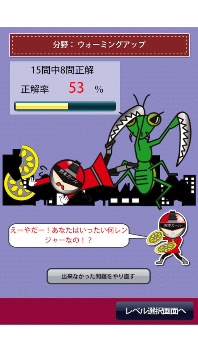 熊本の歴史や文化に関連するクイズが盛りだくさん。これなら子どもの社会科にも役立ちます。一応の設定として、クイズに正解することで熊本ガールが怪獣を倒す、ということになっているので子どもなら楽しめるはず。