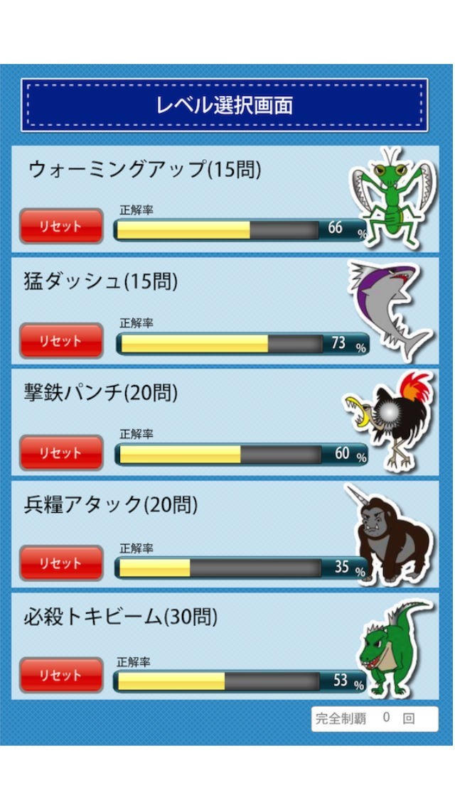 100種類以上の問題を用意!レベル別にクイズにチャレンジする事が可能