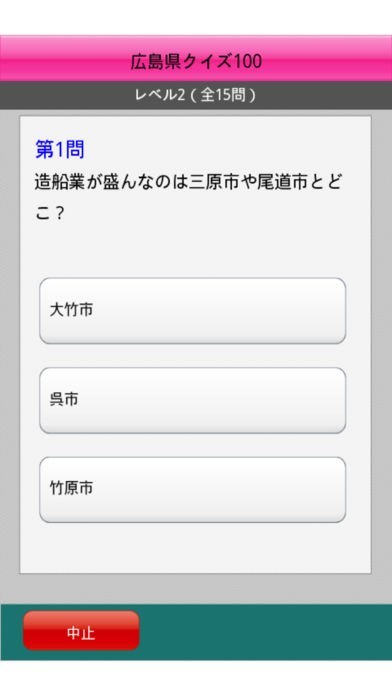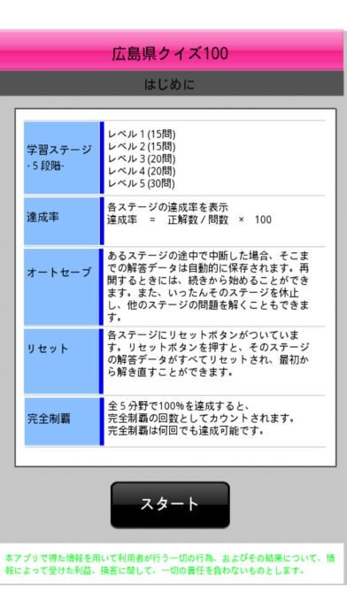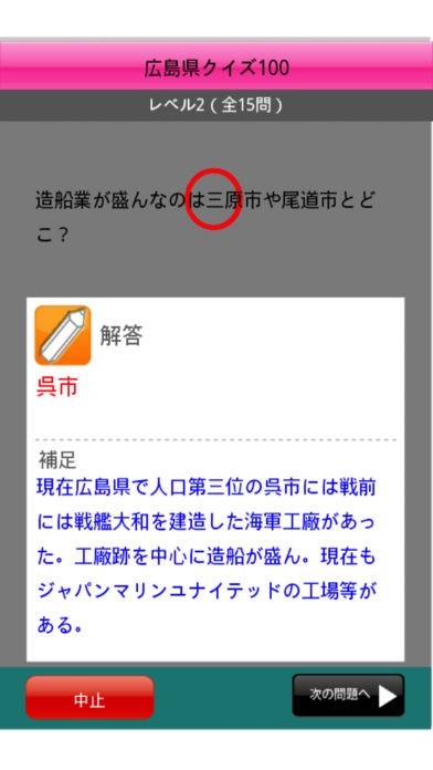 App Storeより引用このアプリは、広島県に関する100のクイズに答えるアプリです。