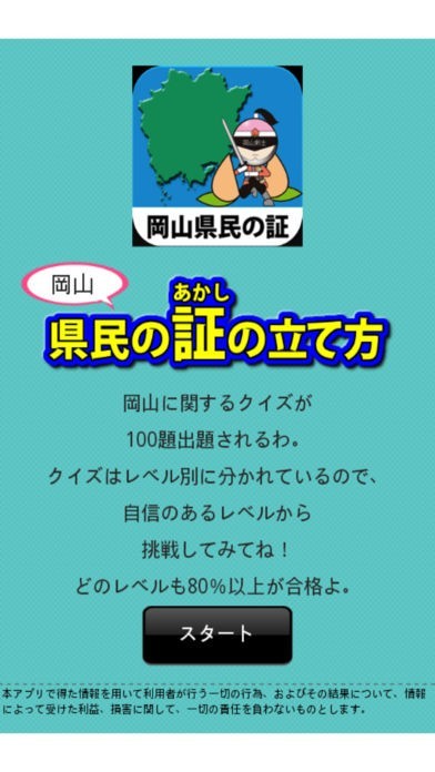 App Storeより引用このアプリは、岡山県に関する100のクイズに答えるアプリです。