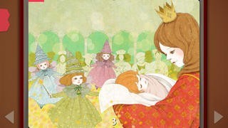 眠れる森の美女は、絵本に合わせた効果音が流れたり、物語を朗読してくれたりします。気になる絵柄は、タッチすると絵に合わせた効果音がなって楽しめます。ページを送るときは、自分のペースでタップして物語をじっくり読み進めていくことができます。
