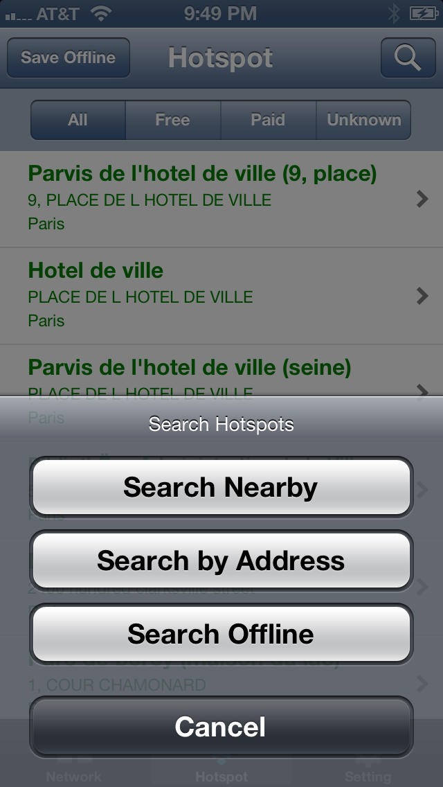 You can search the offline database by your current position or by a city. So even your iPhone/iPod doesn't come with a GPS, you still can find hotspots near the location you want. When online, you are able to get the latest hotspot information and update the offline database.