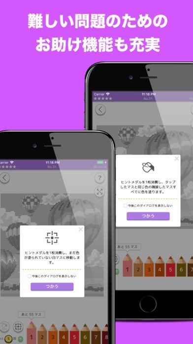 紙や色鉛筆、クレヨンなどの道具がなくてもぬり絵を楽しむことができ場所や時間も関係ないため、通勤通学時などの電車やバスの移動時間を有効利用して楽しむことができます。
