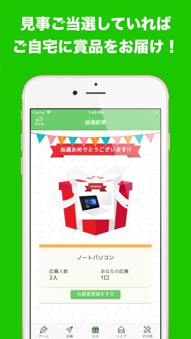 問題をクリアすると応募ポイントがもらえます。1ポイント1口として懸賞に応募できます。難しい問題になればもらえる応募ポイントも多くなるので、クリア時には達成感を味わえます。