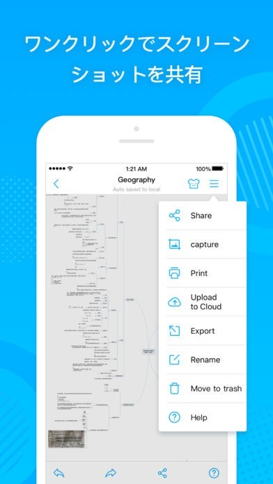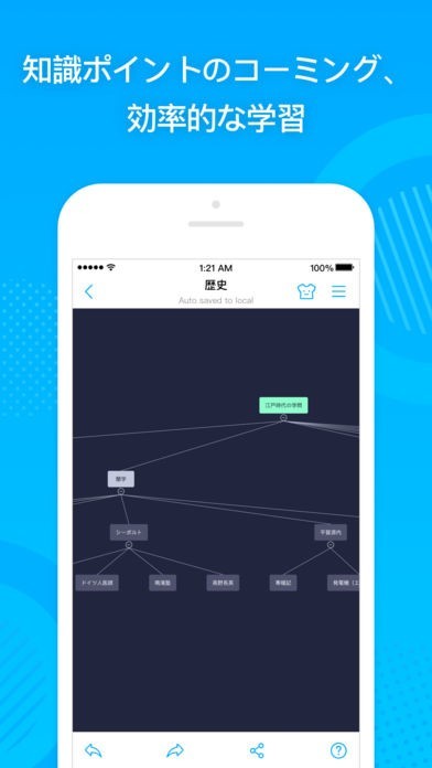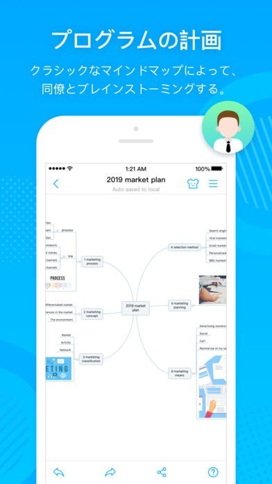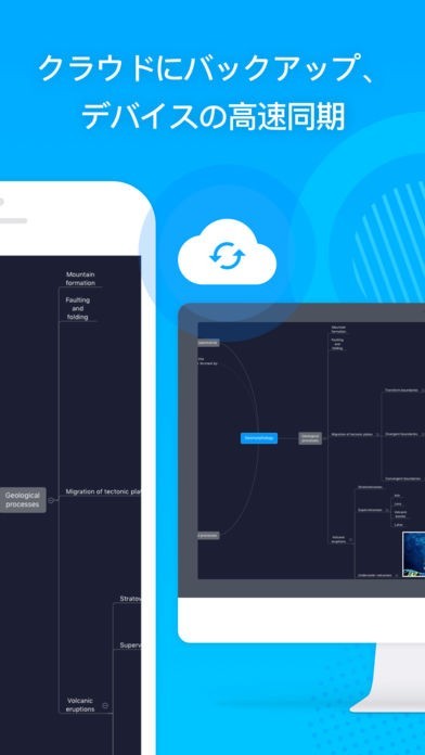 App Storeより引用MindNet - マインドマップとスケジュールのまとめではダイアグラム方式で様々な面から知識を整理し、つなげることができます。頭をスッキリさせ、問題を分析するのに役立ち、それに応じて内容を記憶、把握できます。