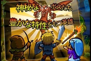 主人公だけでなく敵もポップでキュートな絵柄が特徴的なRPGアプリです。画面上のバーチャルパッドで移動と攻撃や必殺技を選ぶだけという簡単操作なので誰でも直感的にバトルを楽しむことができます。剣士か魔法使い、アサシン、狩人の4つから主人公英雄のジョブを選ぶことができ、それぞれのジョブによって使えるスキルが違ってきます。多彩なスキルと自分の戦い方に合ったジョブを使いこなしてボスを撃破しましょう。育成はバトルで得たお金で進めていくというシンプルな設定です。バトルに欠かせない武器は装備するものによって見た目が変化するなど、細かなところまで楽しめる要素が満載です。