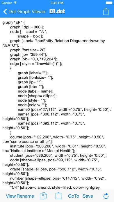 App Storeより引用View and Edit Graphviz dot file on your iPhone or iPad with Dot Graph Viewer, share with others by email or twitter or facebook.