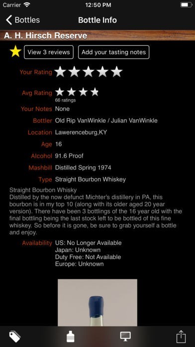 Bourbon Enthusiastというアプリはバーボンのボトルを評価したり他のユーザーの評価を参照して美味しいバーボンを飲みたいと思った時に役に立つアプリです。バーボンマニアの評価が見られるので評価の精度が高いのが良いです。