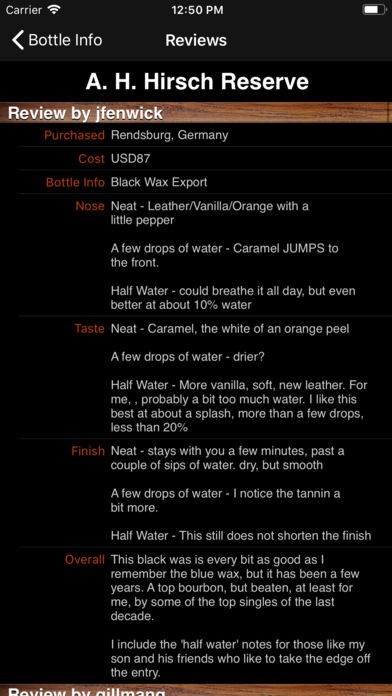 自分自身のバーボンのテイスティングノートを付ける事もできるので自分がそれまで飲んだ事がバーボンとその評価も一目で分かって良いです。重複して飲む事を防ぎたい時に役立ちます。