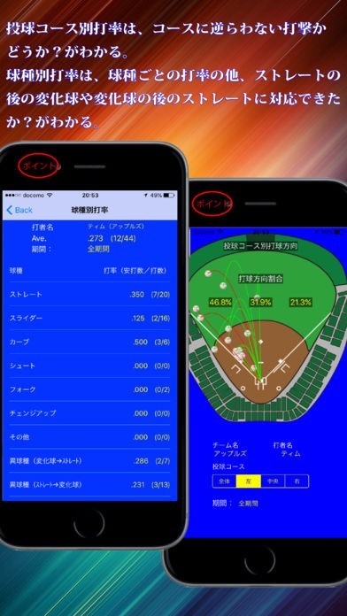 その他のアプリは、打撃結果のみを入力し、打撃成績を見るものばかり。