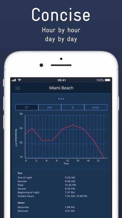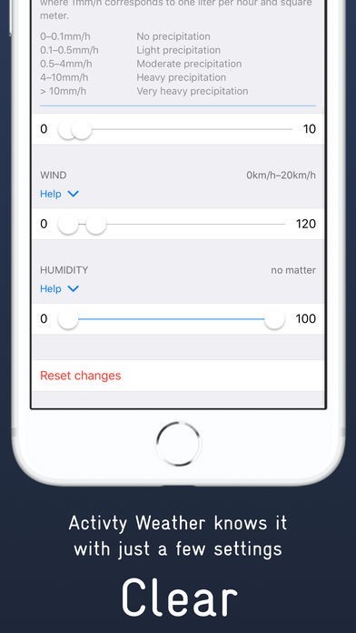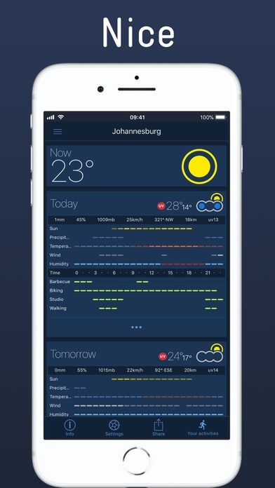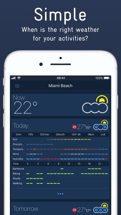 Simple and with just a few settings you can set the weather conditions for each activity – the app does the rest and displays it in a nice, clear and concise way.