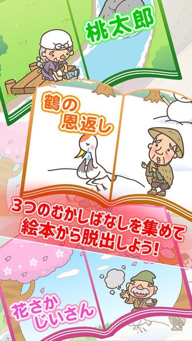 お子様に馴染み深いむかしばなしをモチーフに作られた全24ステージの脱出ゲームです。危機を回避したり問題を解決するために色々なものにタッチしながら進んでいきます。分かりやすい操作性と謎解き要素でお子様とのプレイに最適です!