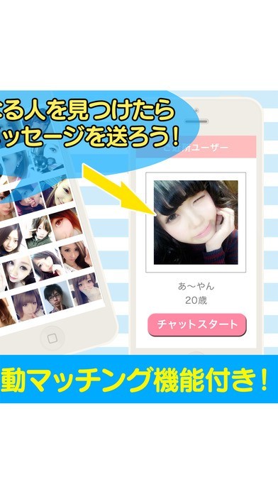 個人情報の登録なしで写真検索でユーザーを探すことができる出会い系SNSです。ユーザー名からの検索することや、プロフィールでもさまざまな条件で好みの人を探すことが可能です。