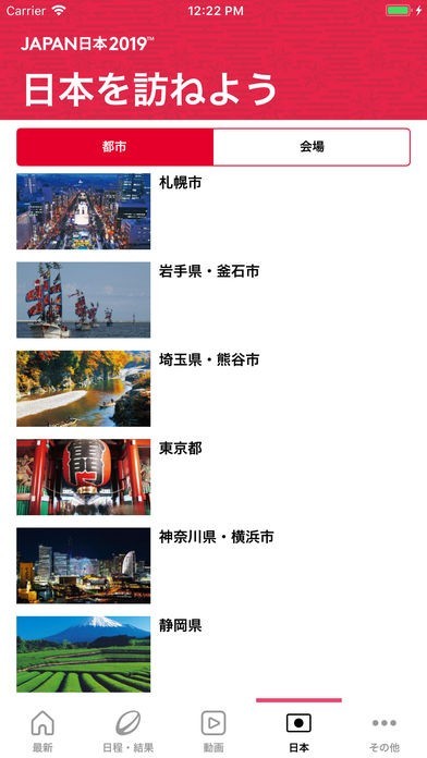 日本で開催されるラグビーワールドカップの公式アプリで盛り上がる