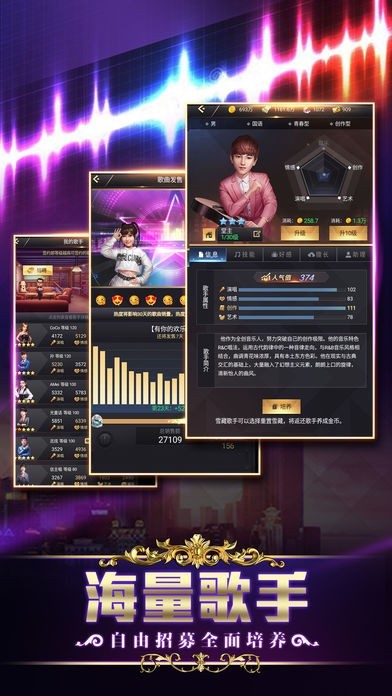 制作符合市场类型的唱片,与其他玩家分组比拼销量排行;